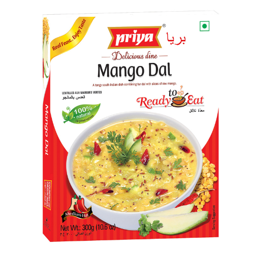 Vychutnejte si tropickou delikatesu Priya Ready to Eat Mango Dal. Toto jídlo dokonale spojuje bohatost čočky se sladkou a kyselou chutí zralých mango, čímž vytváří harmonickou symfonii chutí. Každé sousto nabízí explozivní chuť, která vás přenese do srdce jižní Indie. Díky pohodlí jídla připraveného k okamžitému použití vám Priya Mango Dal umožňuje vychutnat si autentickou chuť čočky ochucené mangem a to bez jakýchkoli potíží. Pozvedněte svůj gastronomický zážitek s touto jedinečnou a chutnou směsí ingrediencí a vychutnejte si esenci indické kuchyně v každém soustu.