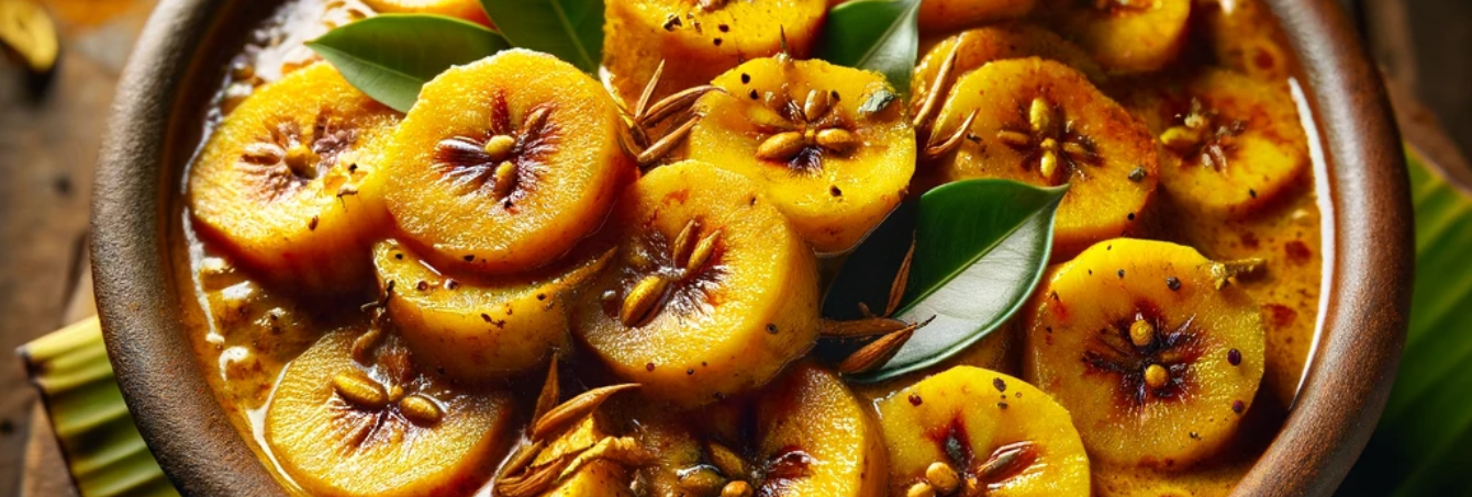 • If you want a thicker curry, you can mash some of the plantain slices against the side of the pan.